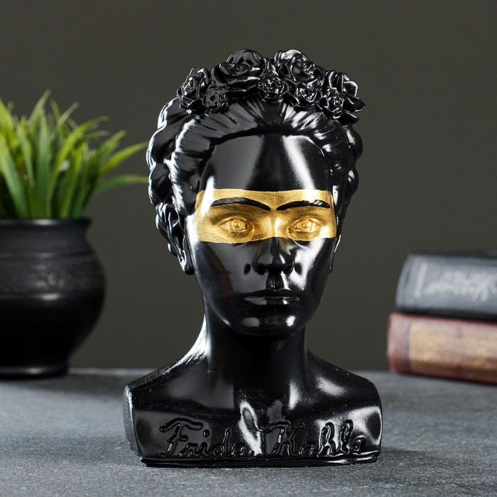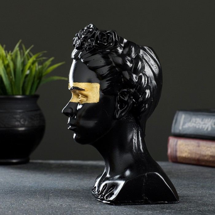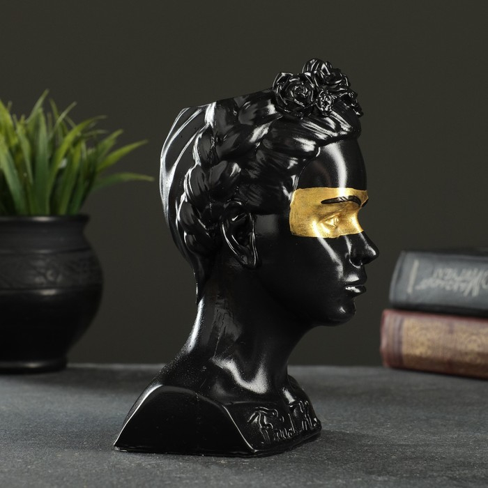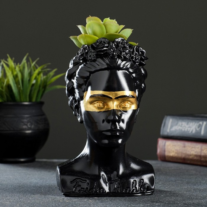 Кашпо - органайзер "Бюст Фрида" черный с золотом, 11х17х11см