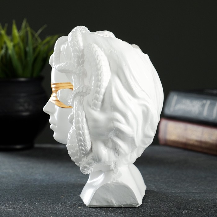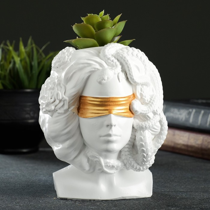 Кашпо - органайзер "Горгона Медуза" белая с золотом, 13х15х11см