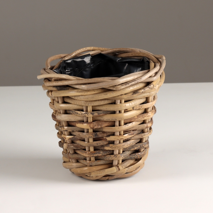Кашпо плетеное, D14xH13см, серый, ротанг