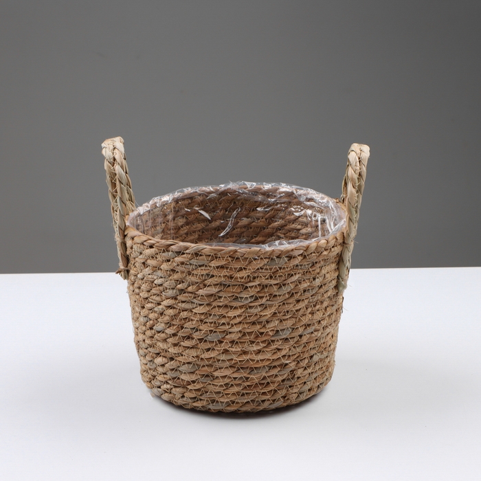 Кашпо плетеное "Кения" цилиндр с ручками, 17,5х17,5х16 см, натуральный