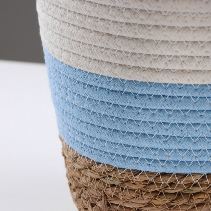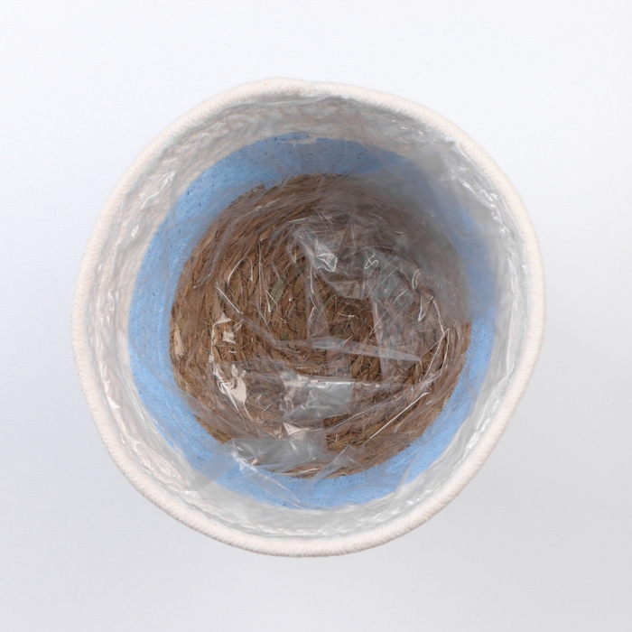 Кашпо плетеное "Намибия", 21,5х21,5х18,8 см, натуральный, голубой, белый