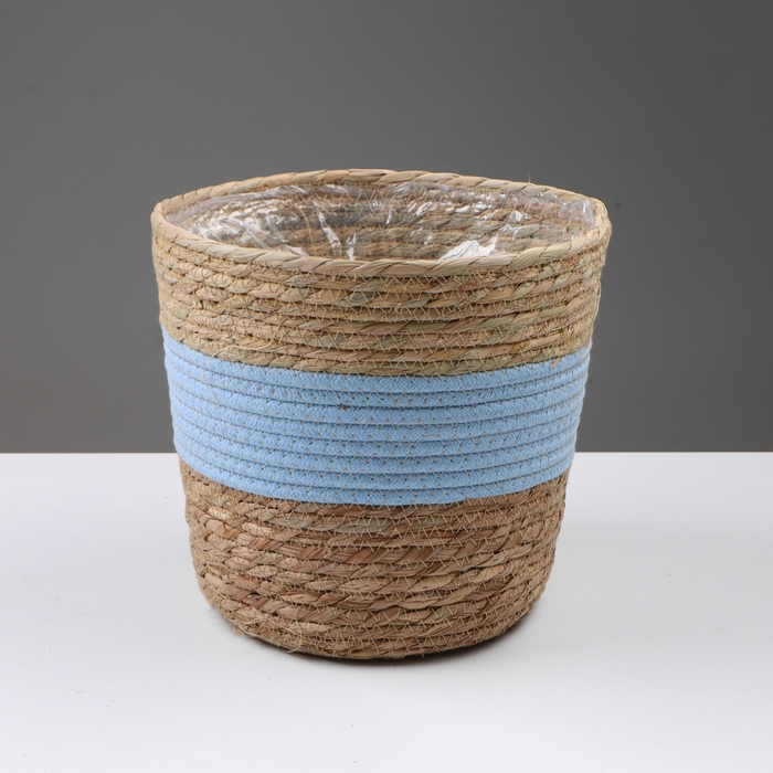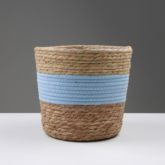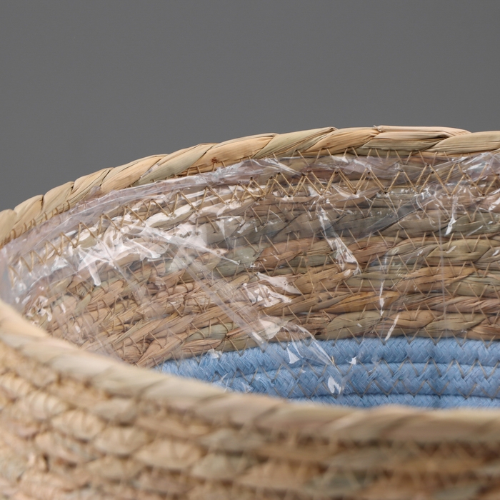 Кашпо плетеное "Намибия", 25,5х25,5х23 см, натуральный, голубой