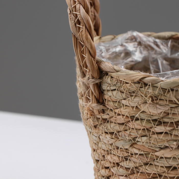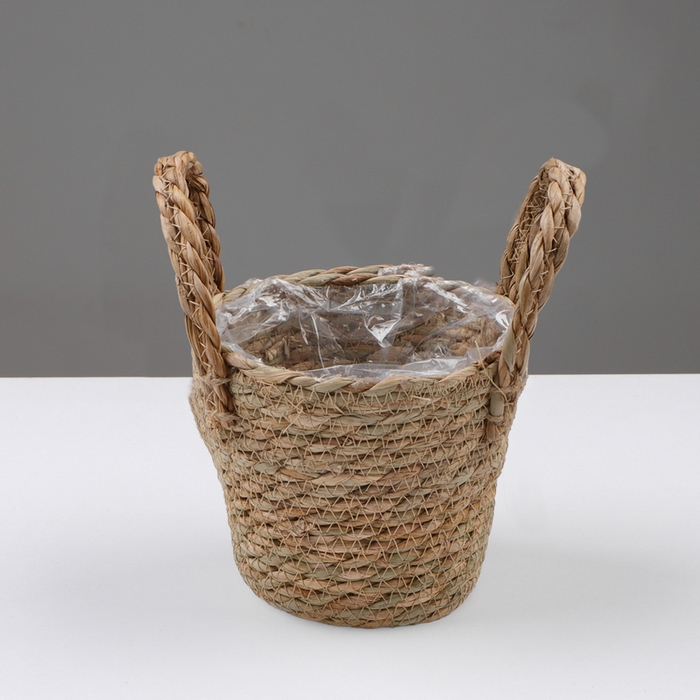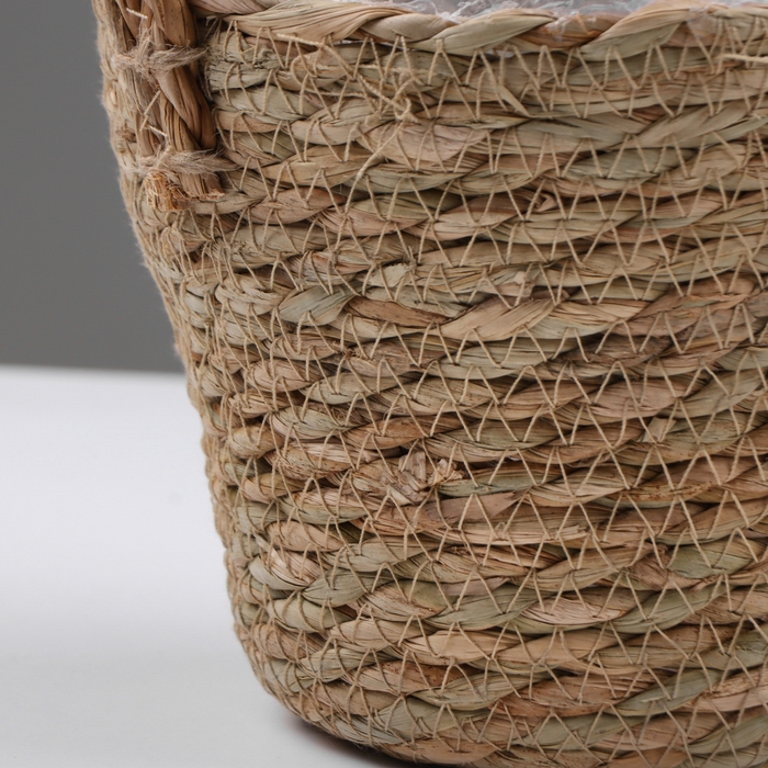 Кашпо плетеное "Сафари" с ручками, 15,5х15,5х13,5 см, натуральный
