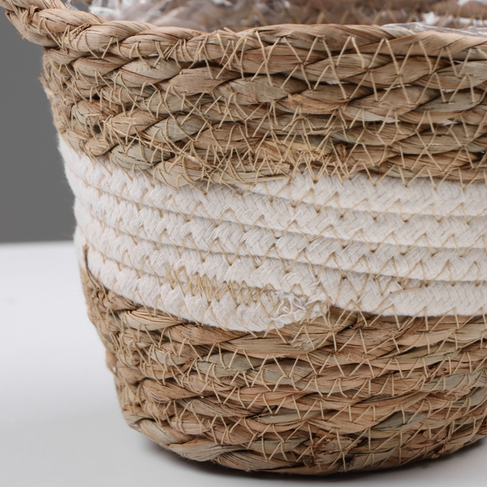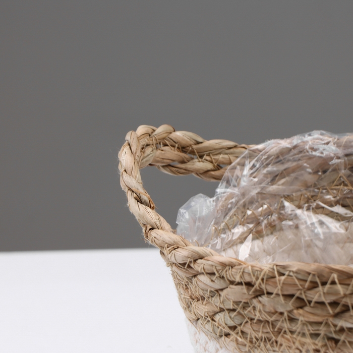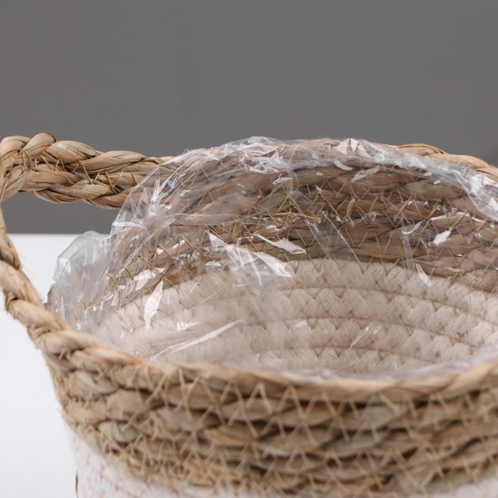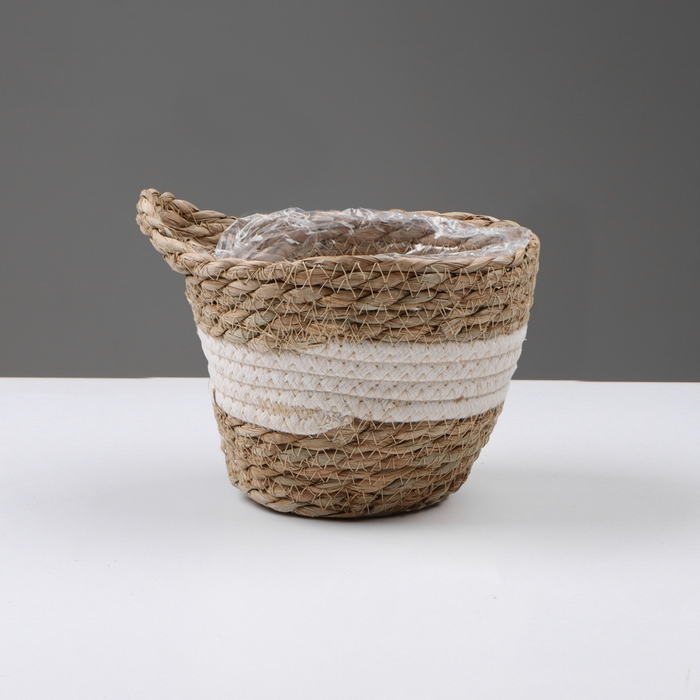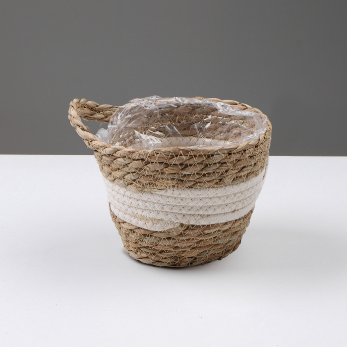 Кашпо плетеное "Танзания" с ручкой, 15,5х15,5х13,5 см, натуральный, белый