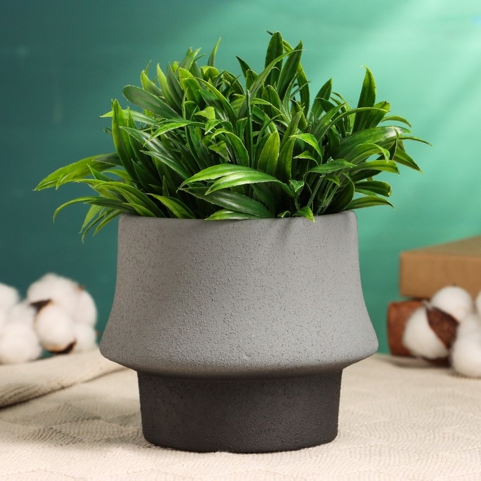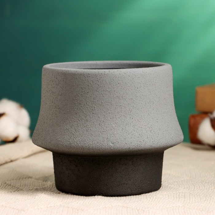 Кашпо - ваза "Мина" серое с черным, 13х13х11см