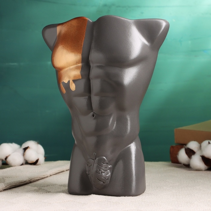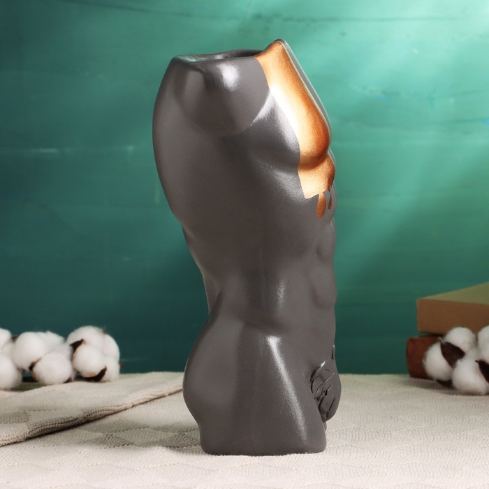Кашпо - ваза "Торс мужчины" серое с бронзой, 28 см
