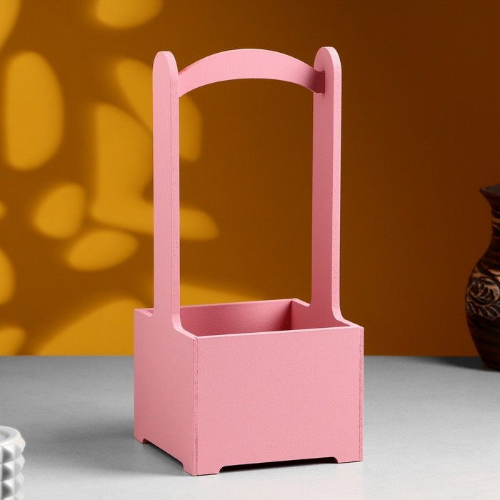 Кашпо - ящик деревянный 13,5х13,5х30 см Розовый Коралл