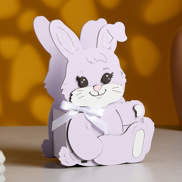 Кашпо "Зайка с бантом", 13,5х7х19,5 см, дуб, сиреневый