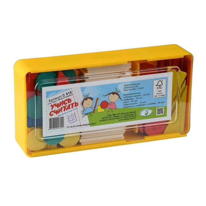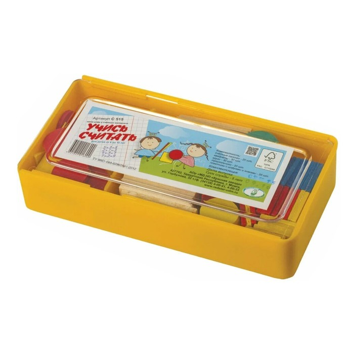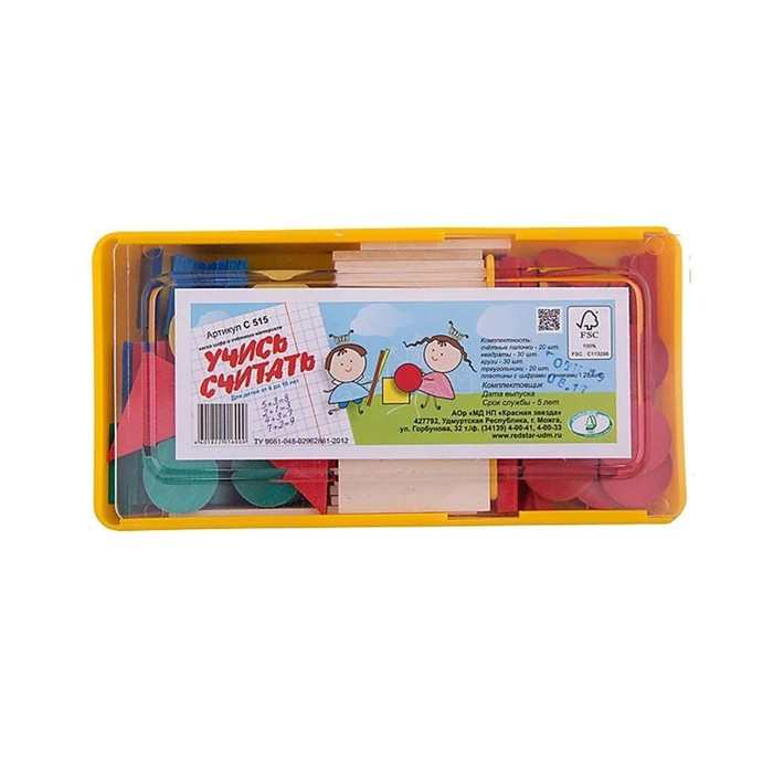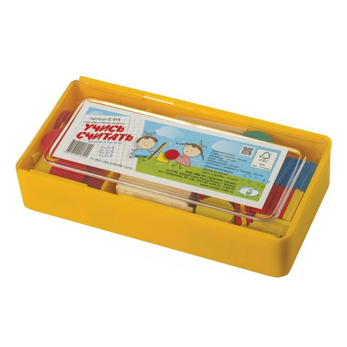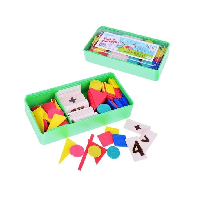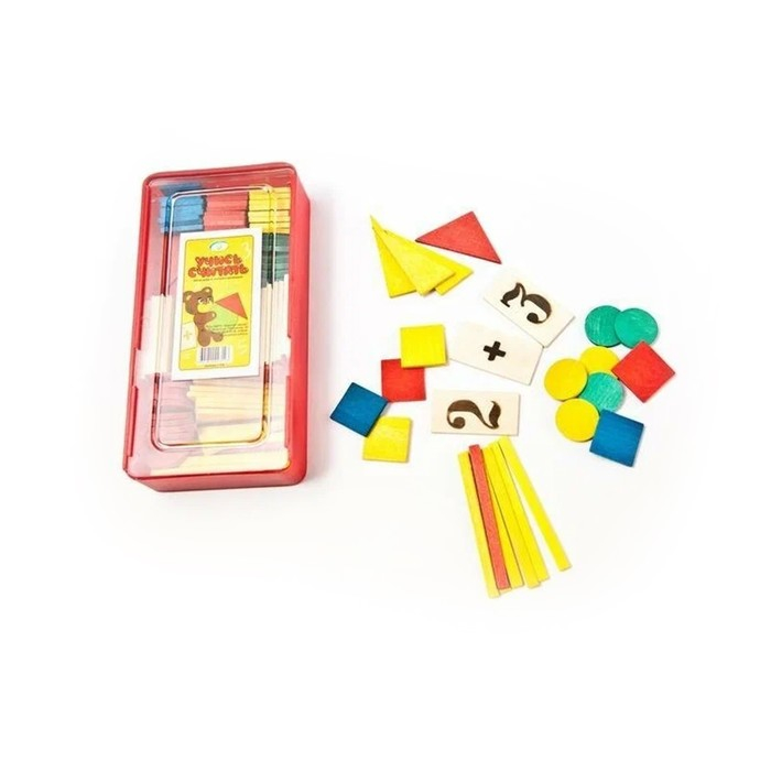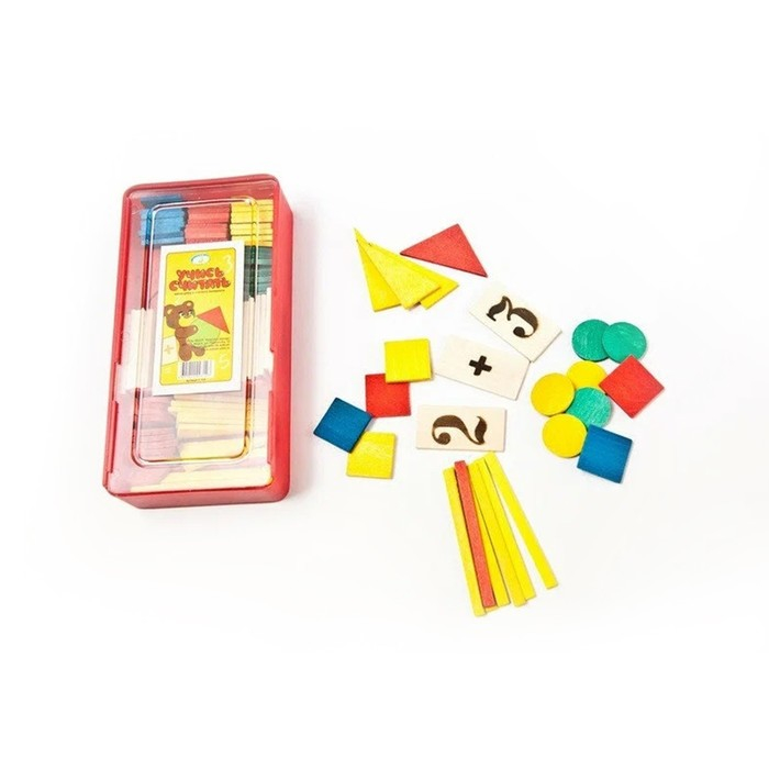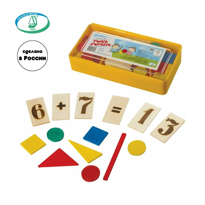 Касса цифр и счетного материала "Учись считать", 128 предметов, Красная звезда (Можга), дерево береза, С515