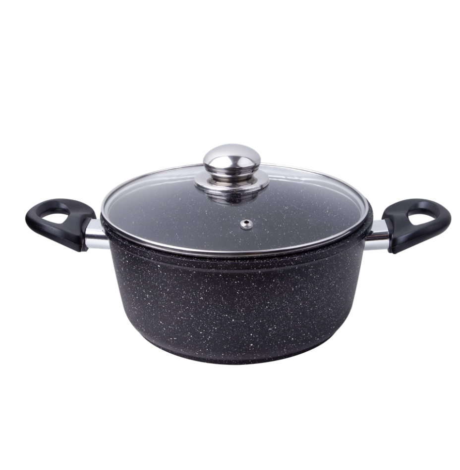 Кастрюля HOMECLUB Marble, литой алюминий, стеклянная крышка 2л