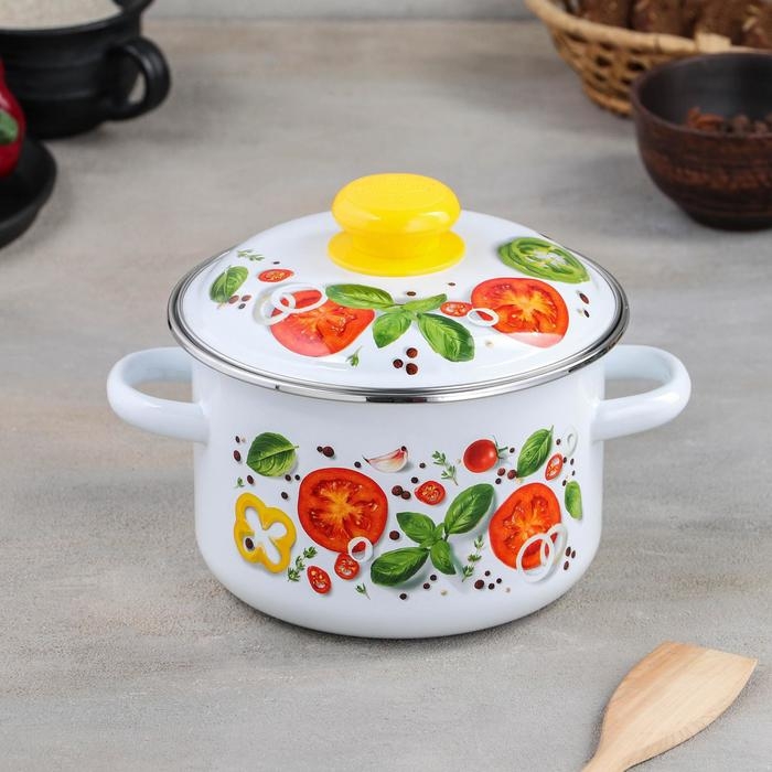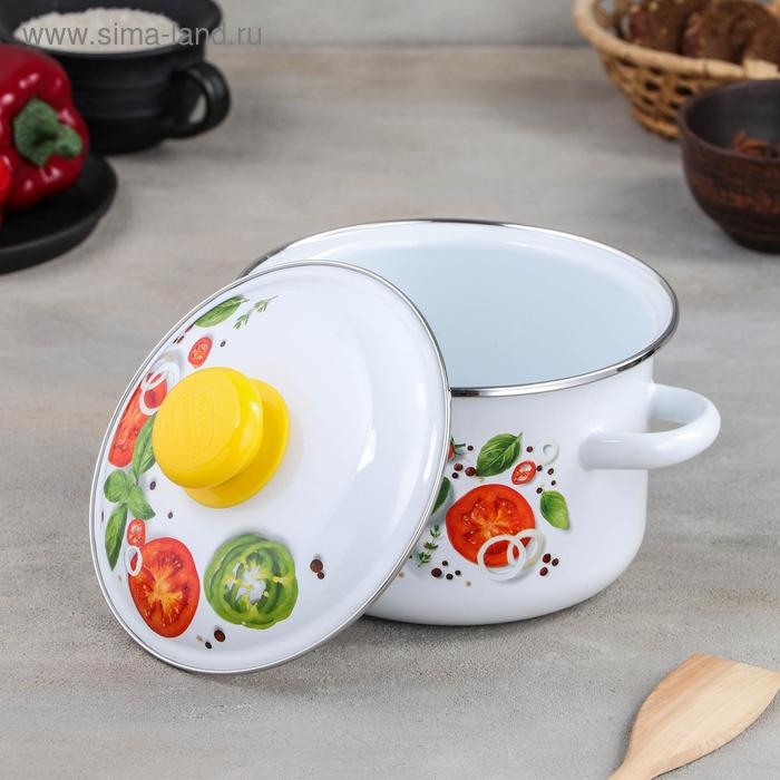 Кастрюля цилиндрическая «Каприче», 2 л, металлическая крышка, с ободком, индукция, цвет белый