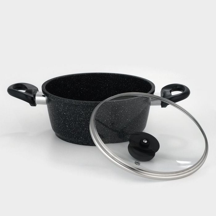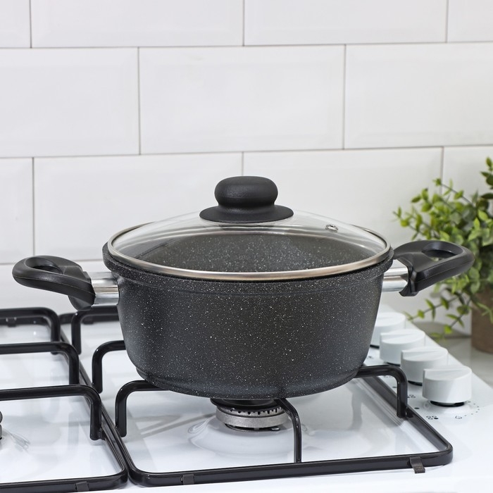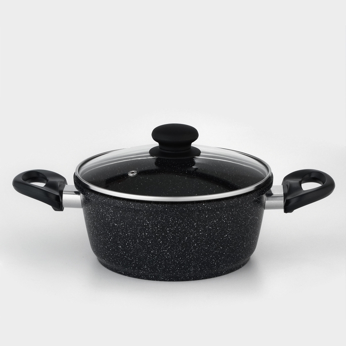 Кастрюля Доляна «Элит», 2 л, 2 л, d=21,5 см, h=9,2 см, антипригарное покрытие, стеклянная крышка