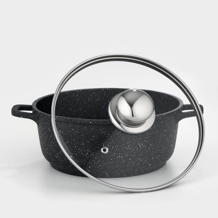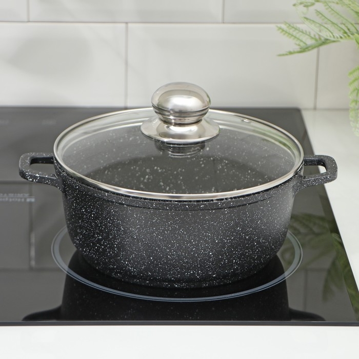 Кастрюля из нержавеющей стали Доляна «Чёрная ночь», 2,2 л, с крышкой