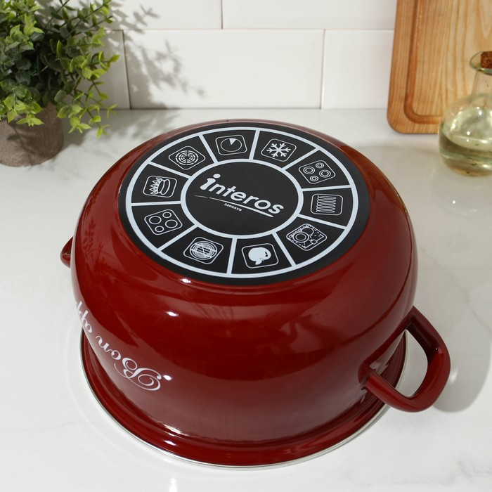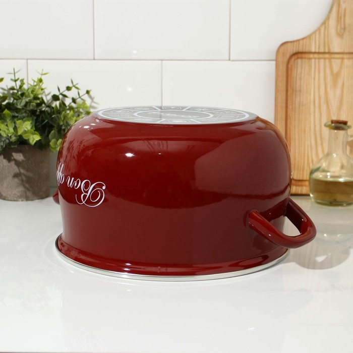 Кастрюля эмалированная «Бордо», 5,7 л, стеклянная крышка, индукция, цвет бордовый