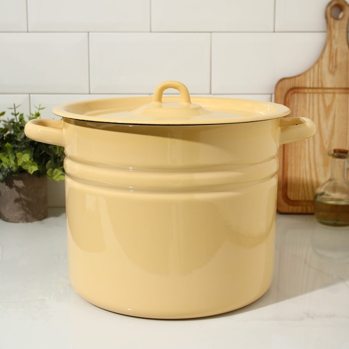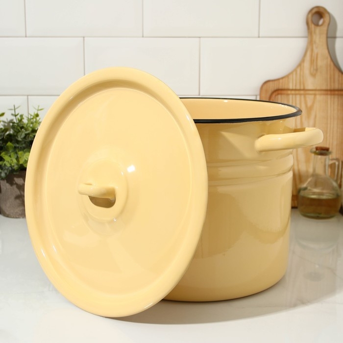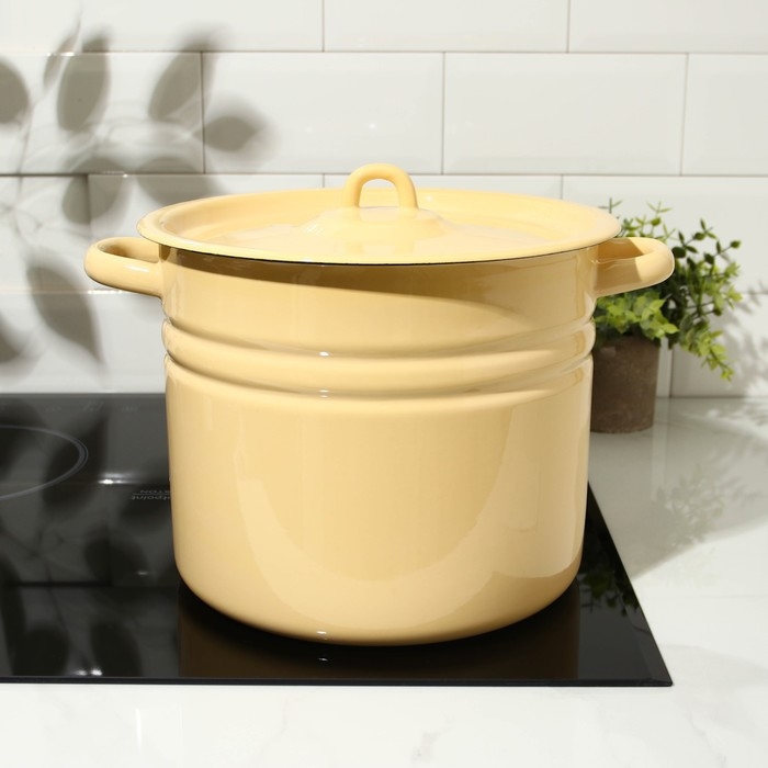 Кастрюля эмалированная цилиндрическая, 9 л, индукция, без декора, цвет бежевый