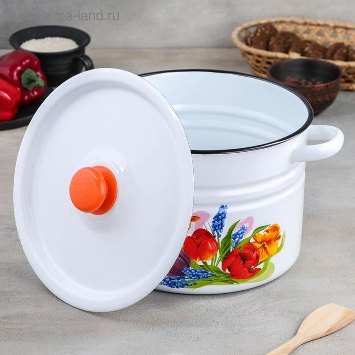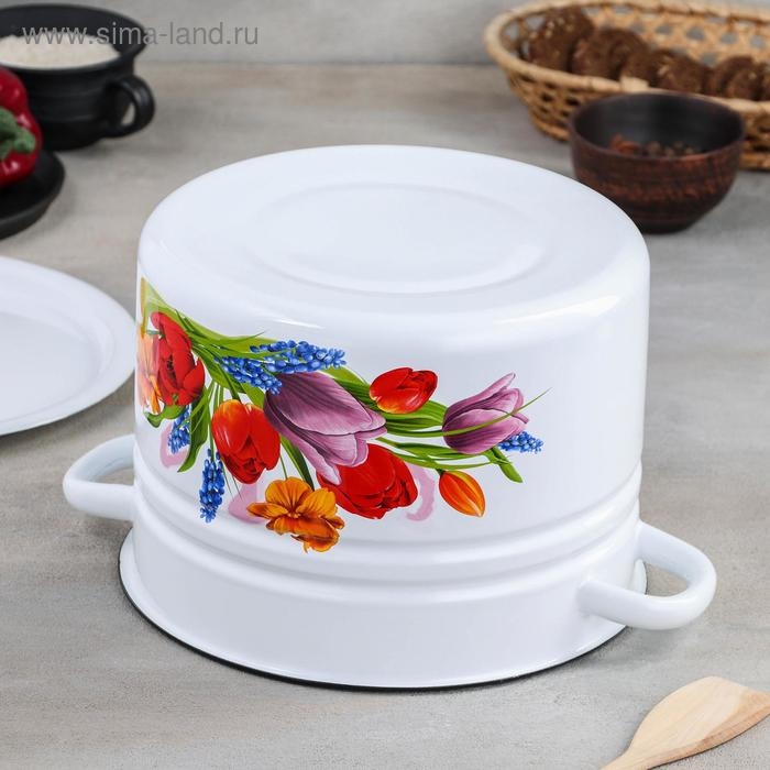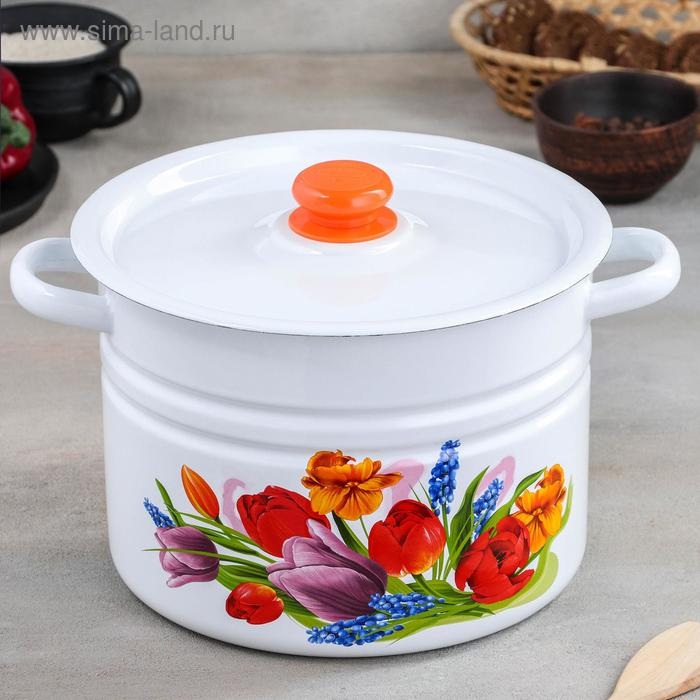 Кастрюля эмалированная цилиндрическая «Тюльпан Май», 8 л, цвет белый