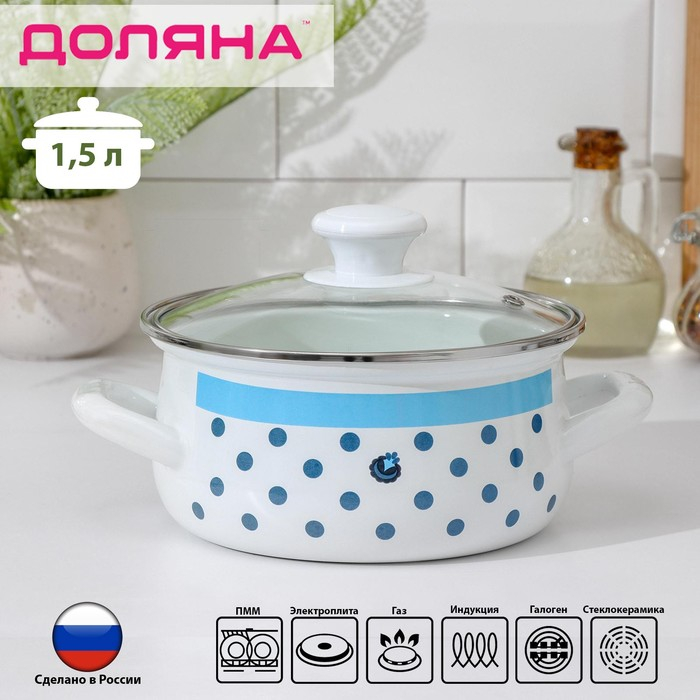 Кастрюля эмалированная Доляна «Свиристель», 1.5 л, индукция, цвет белый