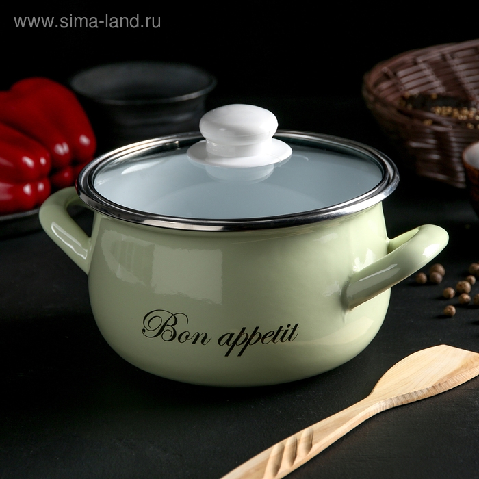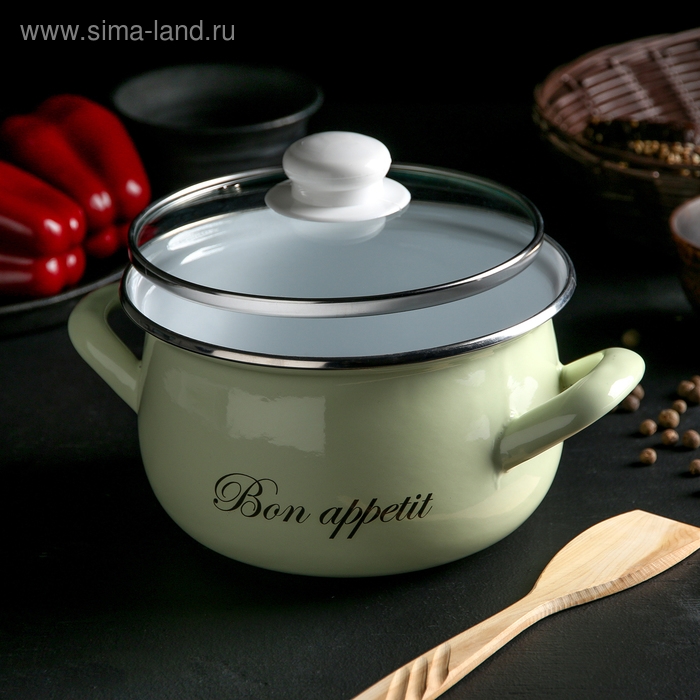 Кастрюля эмалированная «Лайм», 2.1 л, стеклянная крышка, индукция, цвет светло-зелёный