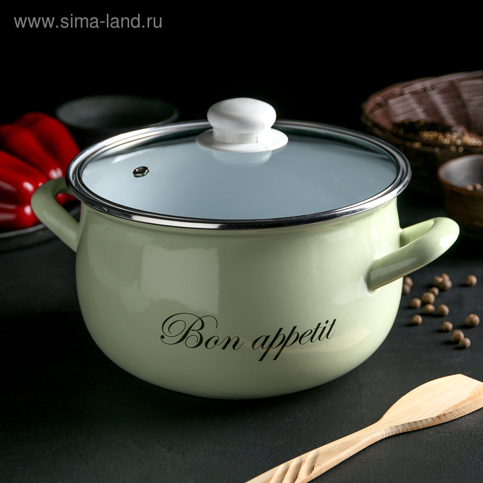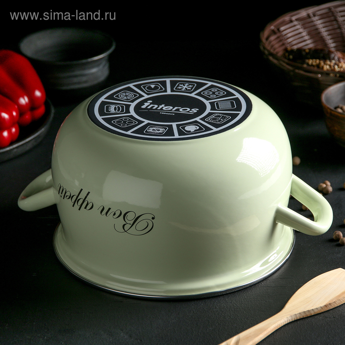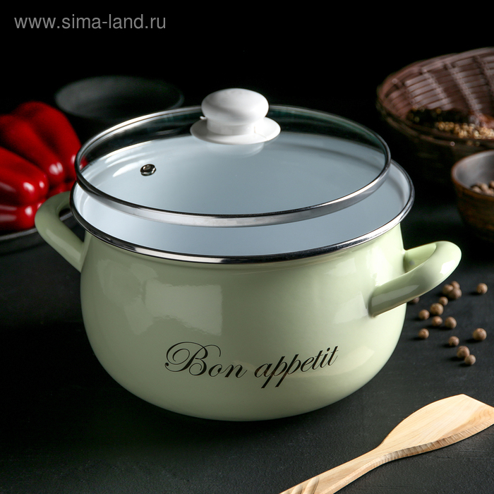 Кастрюля эмалированная «Лайм», 4 л, стеклянная крышка, индукция, цвет светло-зелёный