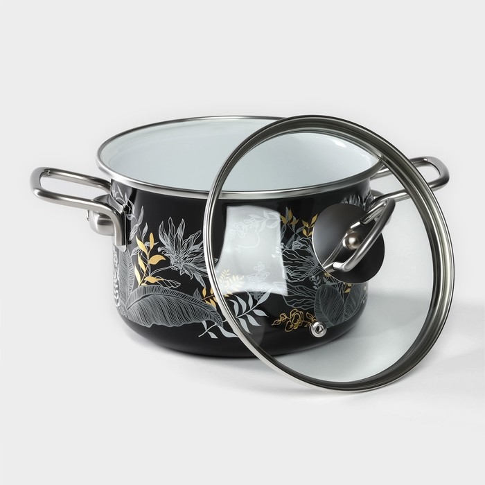Кастрюля эмалированная Magia, 2 л, стеклянная крышка, индукция, чёрный