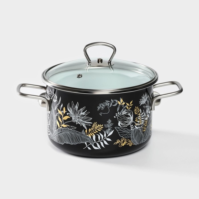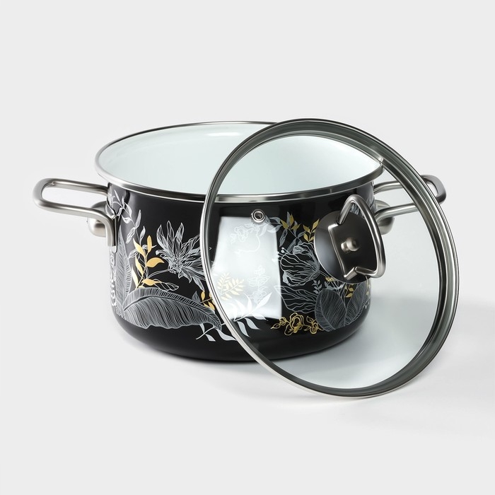 Кастрюля эмалированная Magia, 3 л, стеклянная крышка, индукция, черный