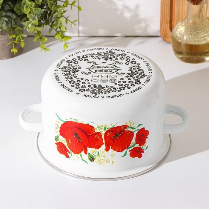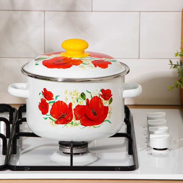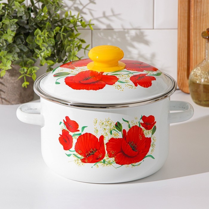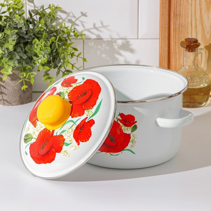 Кастрюля эмалированная «Маки», 3 л, индукция, цвет белый