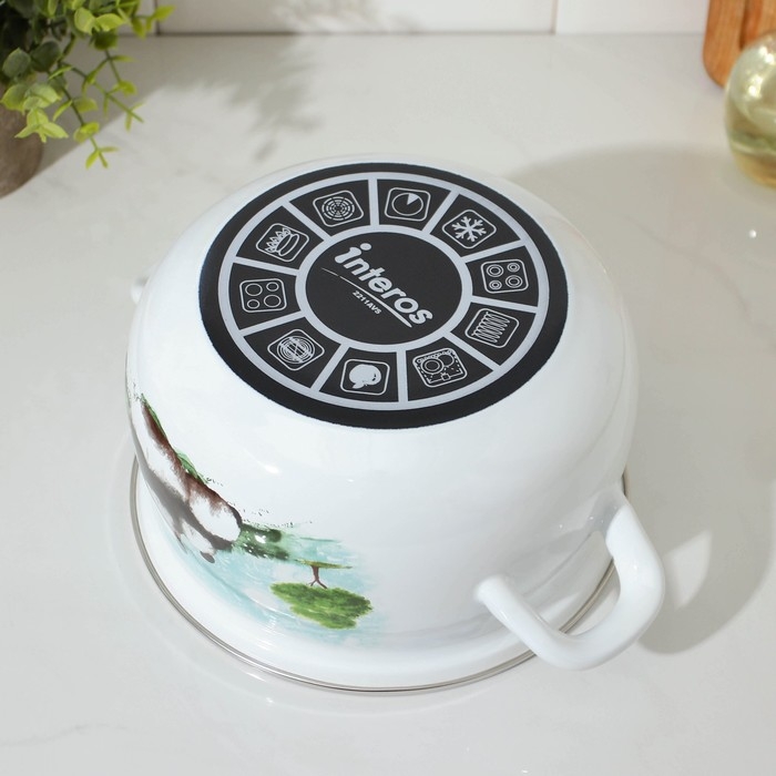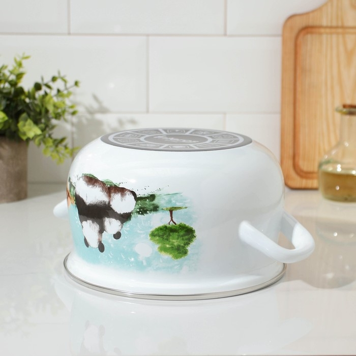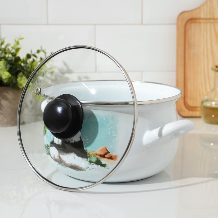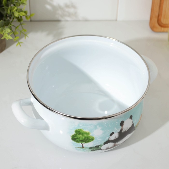 Кастрюля эмалированная «Панды», 3,1 л, стеклянная крышка, индукция
