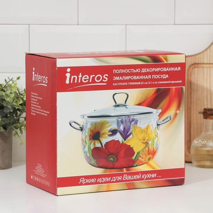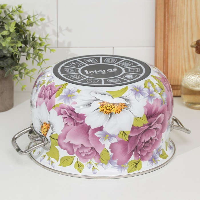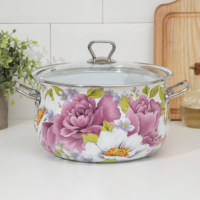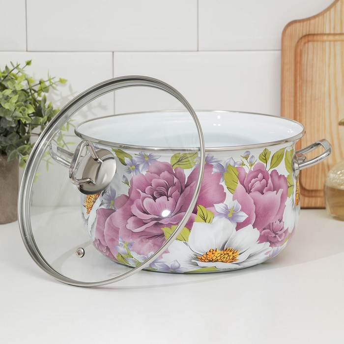 Кастрюля эмалированная «Пион», 5.1 л, стеклянная крышка, индукция
