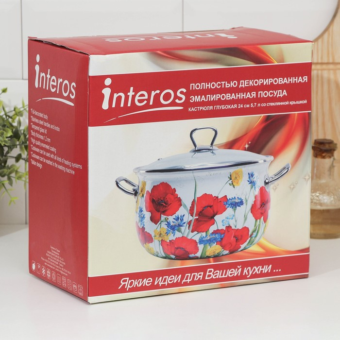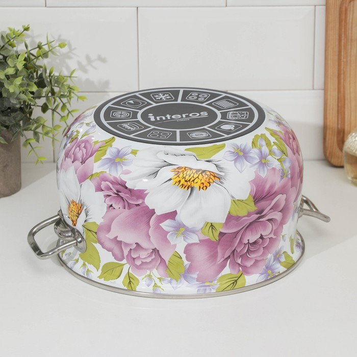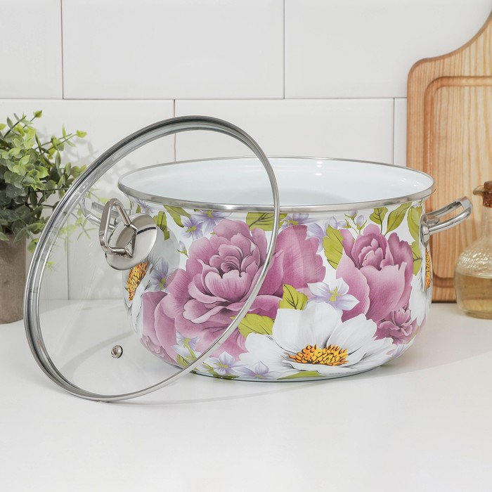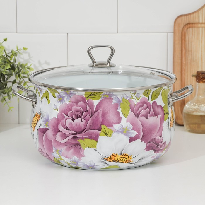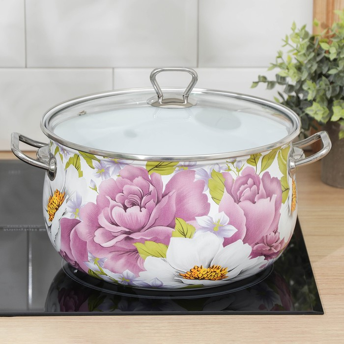 Кастрюля эмалированная «Пион», 5.7 л, стеклянная крышка, индукция