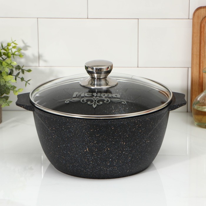 Кастрюля «Гранит Star», 4 л, d=24 см, h= 12 см, антипригарное покрытие, цвет чёрный