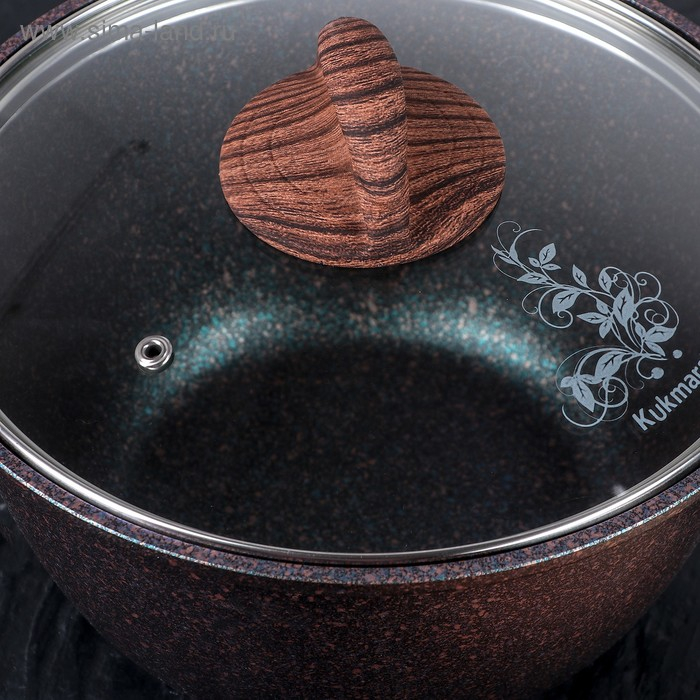Кастрюля Kukmara изготовлена из литого алюминия и покрыта ультрапрочным антипригарным покрытием Ultra granit. Оно усилено сверхтвёрдыми минералами, близкими по твёрдости алмазу, и продлевает срок службы посуды более чем в 7 раз. Покрытие позволяет использовать при готовке даже металлические кухонные принадлежности.