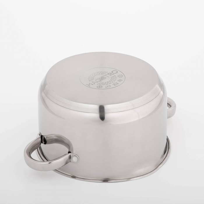 Кастрюля из нержавеющей стали Magistro klimena, 3,5 л, крышка-дуршлаг, носик для слива, капсульное дно, индукция