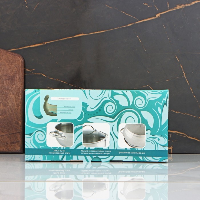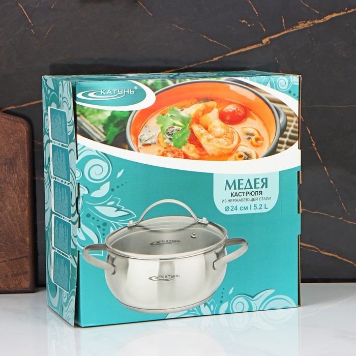 Кастрюля «Медея», 5,2 л, d=24 см, капсульное дно, стеклянная крышка, индукция