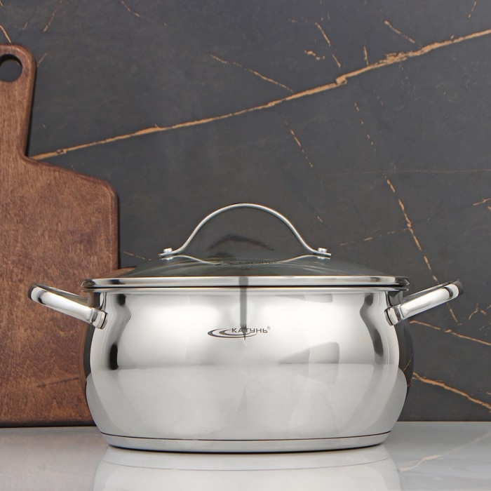 Кастрюля «Медея», 5,2 л, d=24 см, капсульное дно, стеклянная крышка, индукция подходит для всех видов плит. Сферический корпус, демонстрирующий зеркальную наружную полировку, вкупе с термостойкой стеклянной крышкой G-типа и прикрепленными методом точечной сварки прутковыми ручками создают привлекательный образ. Такая модель, без сомнения, украсит кухонный интерьер любого стиля. Толщина стенок изделия равняется 0,5 мм. Многослойное дно включает алюминиевую пластину, за счет которой теплораспределение происходит более интенсивно и равномерно.