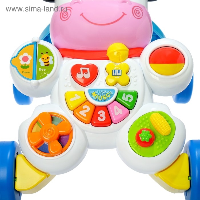 Каталка-ходунки улучшает мелкую моторику рук и формирует слуховое и визуальное восприятие. Игрушка способствует развитию логики, внимания и воображения.