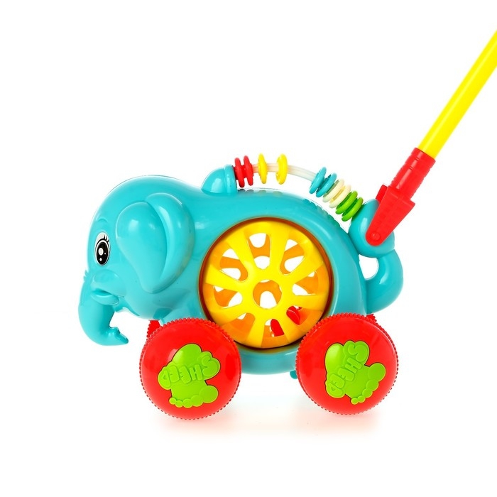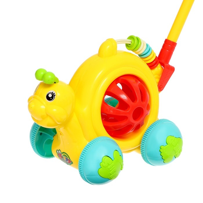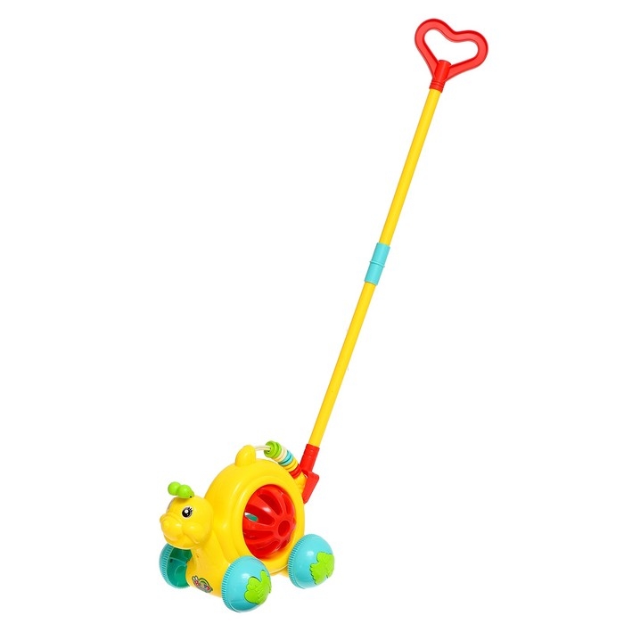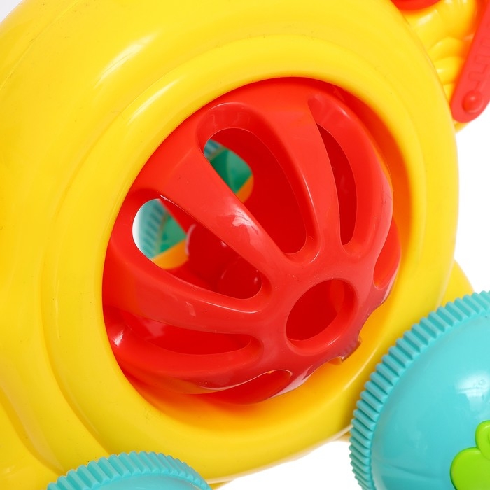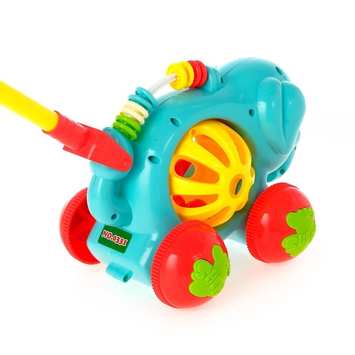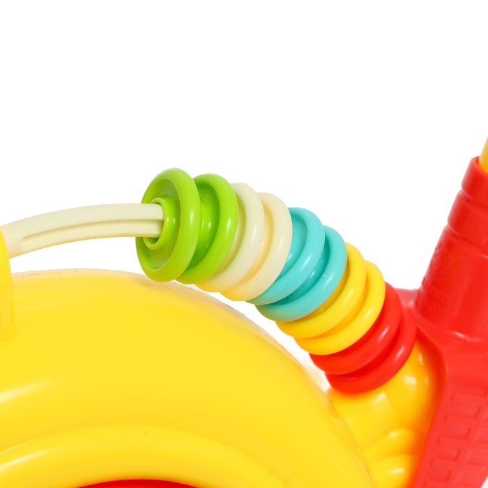 Яркая каталка подойдёт для игры на свежем воздухе или дома.