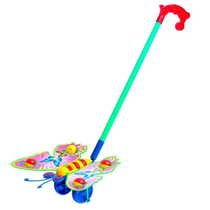 Каталка на палочке «Бабочка» выполнена из качественных материалов ярких цветов, что, несомненно, привлечет внимание малыша.