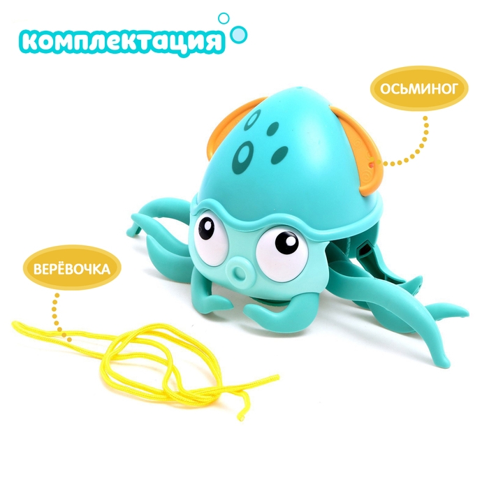 Каталка на верёвке «Осьминог», водоплавающая, цвет бирюзовый