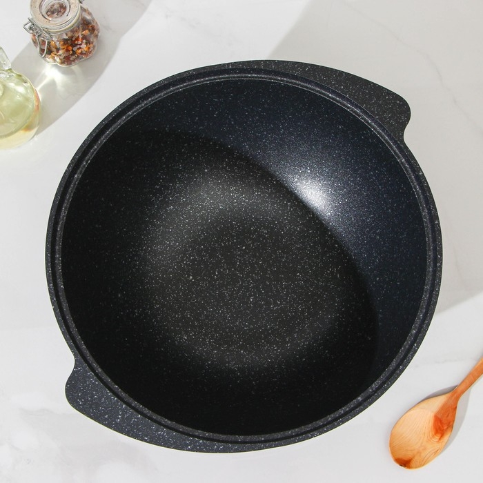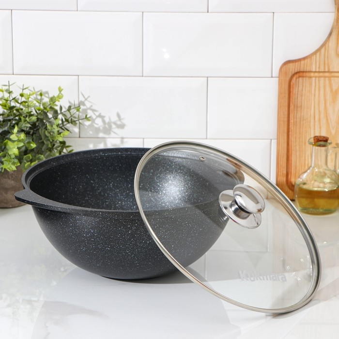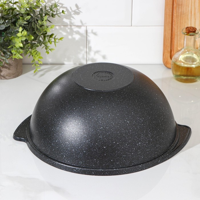 Казан, 4,5 л, стеклянная крышка, литые ручки, антипригарное покрытие, цвет тёмный мрамор
