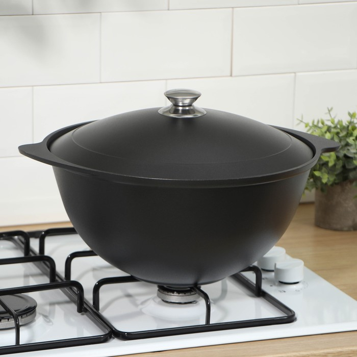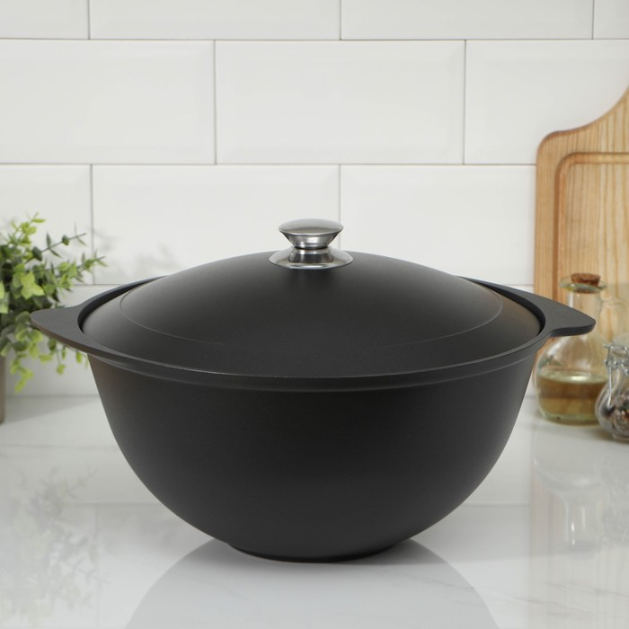 Казан, 7 л, металлическая крышка, литые ручки, антипригарное покрытие, цвет чёрный
