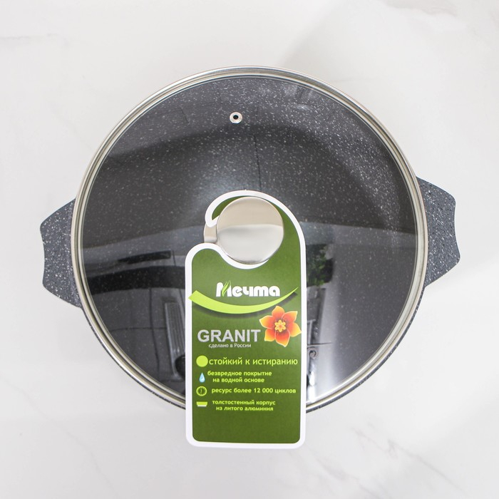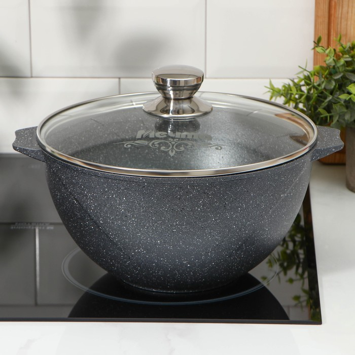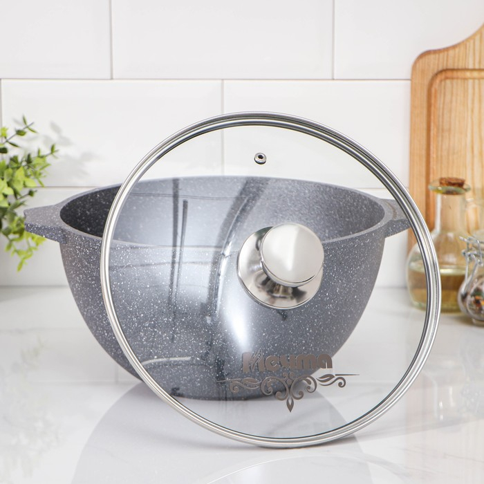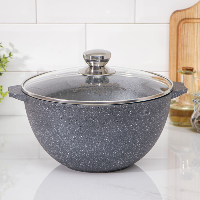 Казан «Гранит», 5 л, стеклянная крышка, литые ручки, антипригарное покрытие, цвет серый