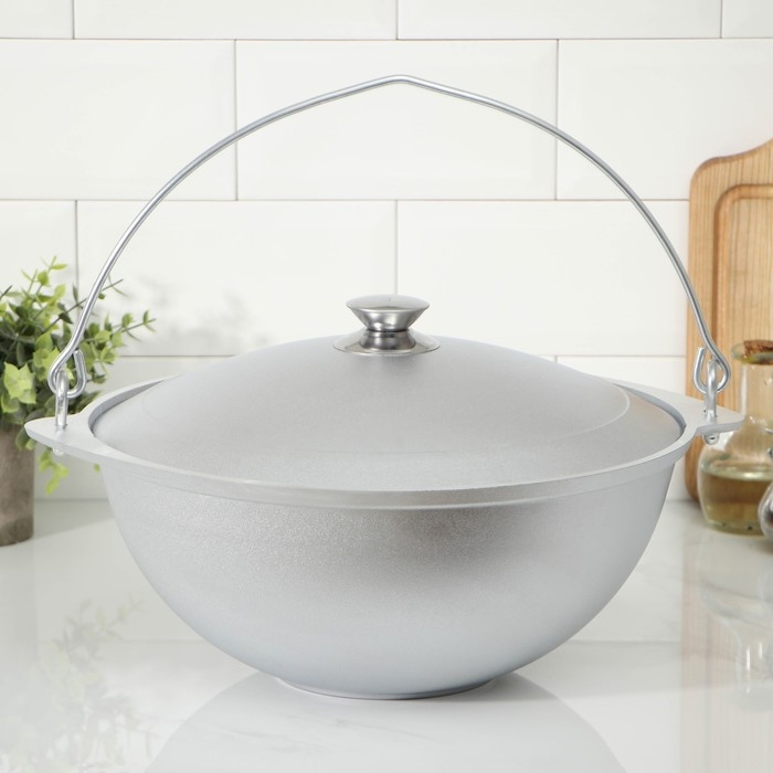 Казан походный, 6 л, алюминиевая крышка, цвет серебряный