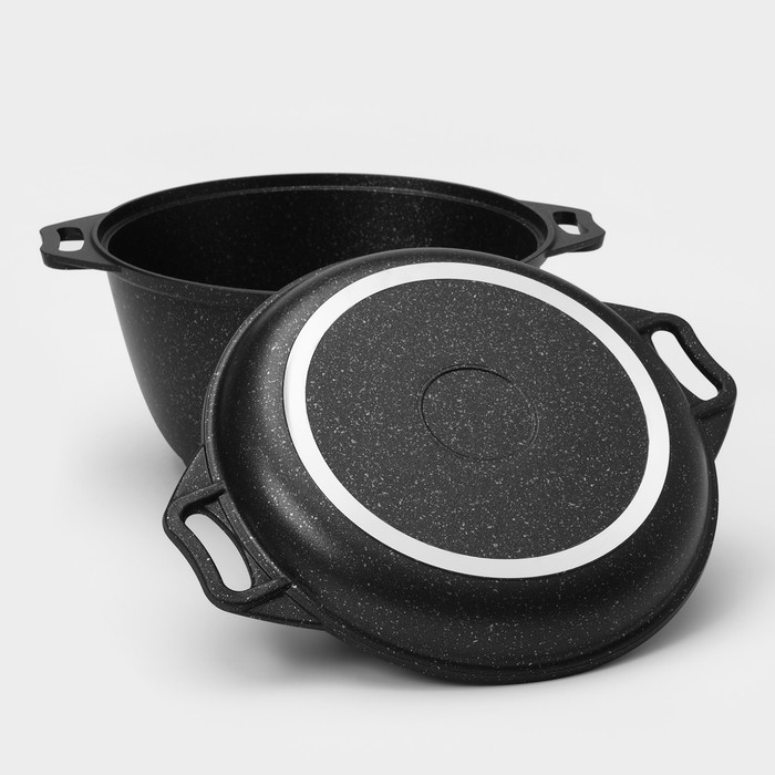 Казан с крышкой-сковородой, 4 л, литые ручки, антипригарное покрытие, цвет чёрный