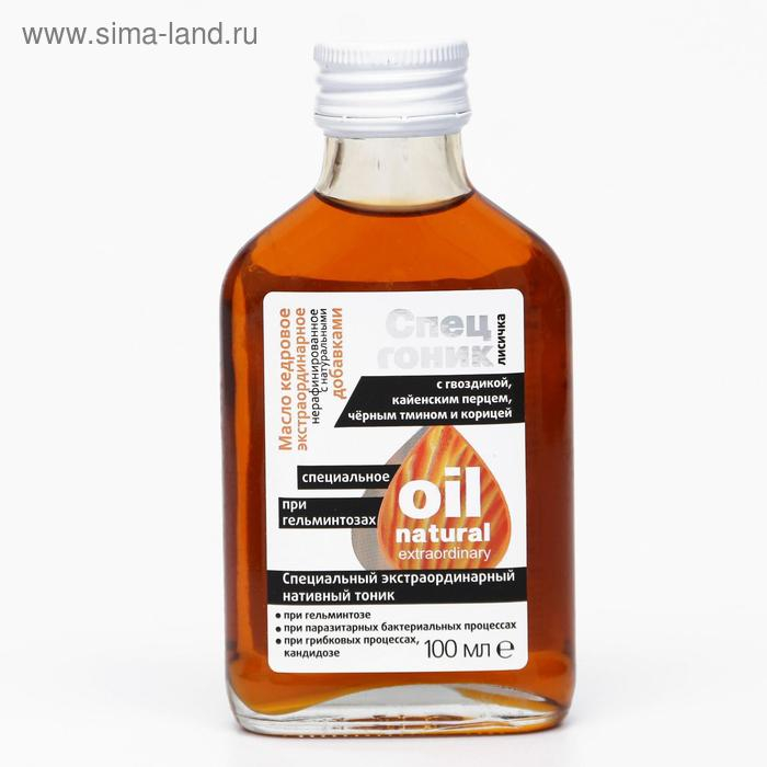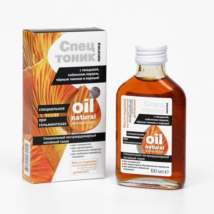 Кедровое масло «Спецтоник лисичка», с гвоздикой, кайенским перцем, чёрным тмином и корицей, при гельминтозах, 100 мл
