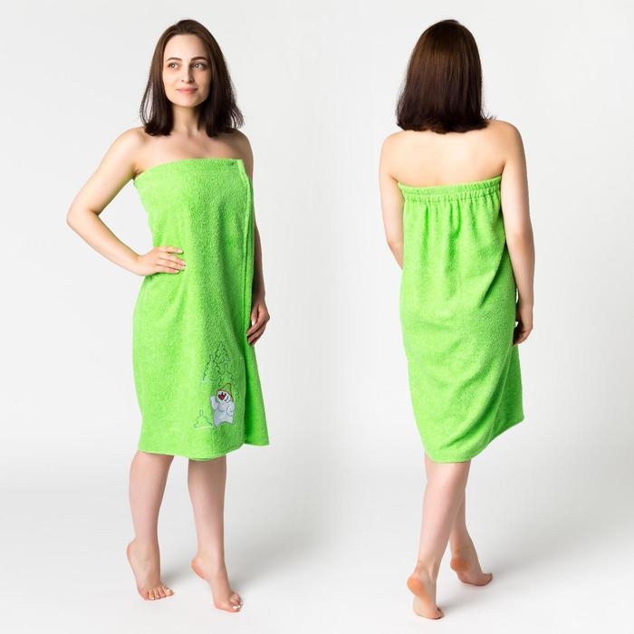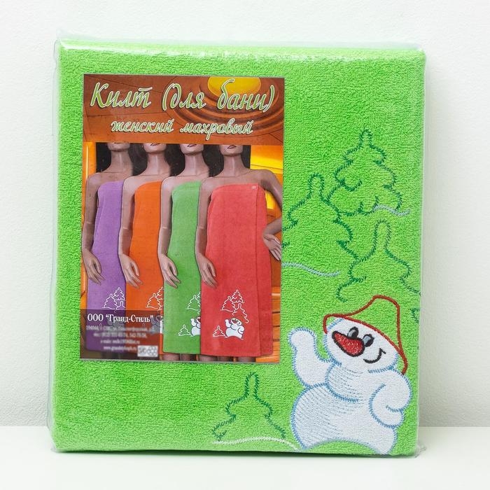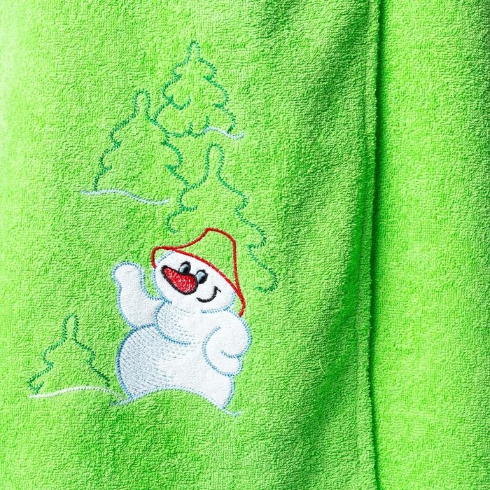 Килт женский для бани и сауны, цвет зелёный вышивка Снеговик, размер 80х150±2 см, махра 300г/м 100% хлопок