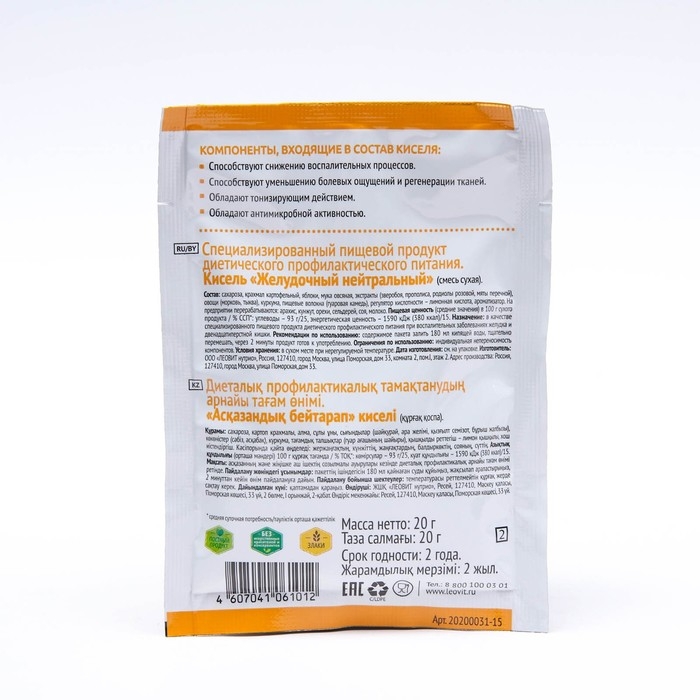 Кисель «Желудочный нейтральный» – это вкусный напиток диетического профилактического питания, предназначенный для использования в качестве элемента диетотерапии при воспалительных заболеваниях желудка и двенадцатиперстной кишки.
