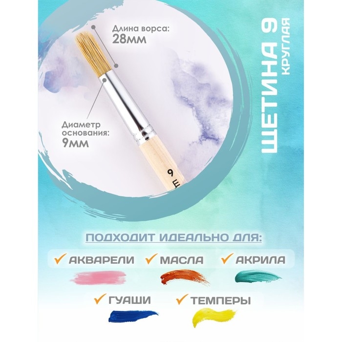 - Важным свойством является расщеплённый кончик, который способствует хорошей наполняемости кисти и ровному нанесению краски. Изделия предназначены для работ с "тяжёлыми красками": маслом, акрилом, темперой, гуашью. Натуральные кисти из щетины – отличный инструмент как для детского и школьного творчества, так для хобби и профессиональной живописи.