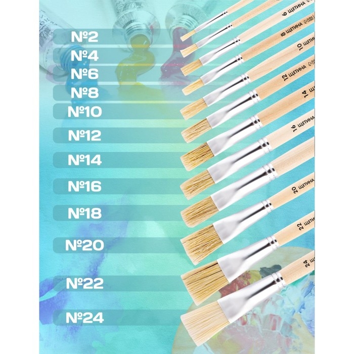 Набор кистей щетина 12 штук: № 1, 2, 3, 4, 5, 6, 7, 8, 9, 10, 11, 12, плоские