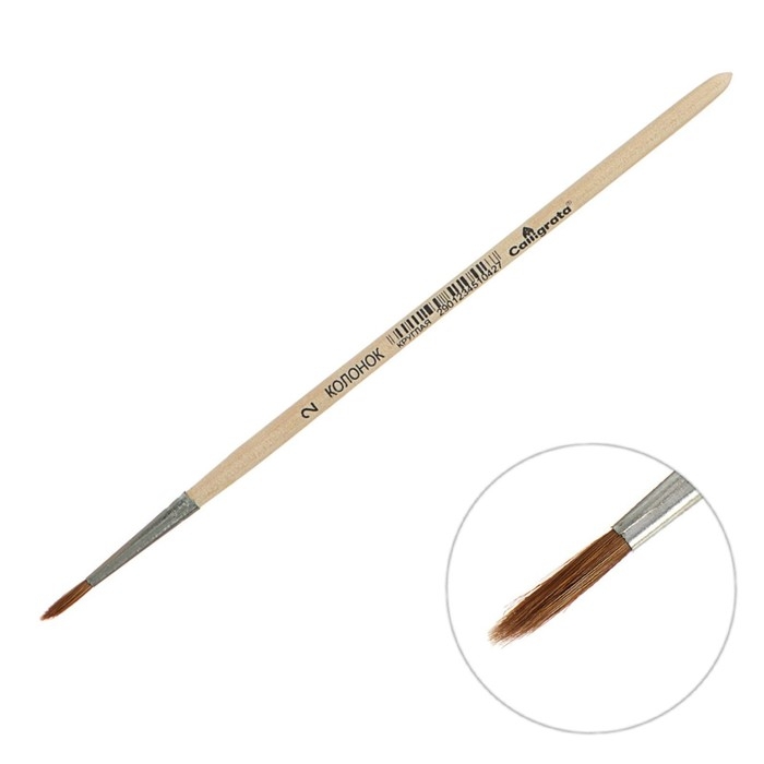 Кисть Колонок Круглая №2 (диаметр обоймы 2 мм; длина волоса 12 мм), деревянная ручка, Calligrata