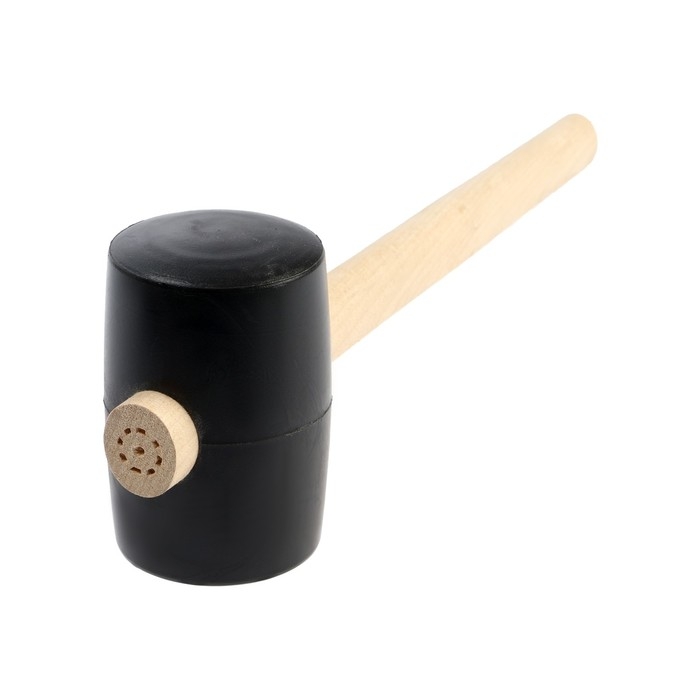 Киянка ЛОМ, деревянная рукоятка, черная резина, 65 мм, 500 г